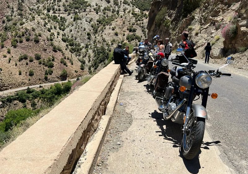 Au départ de la trépidante Marrakech, au guidon d'une Royal Enfield Bullet 500, voilà un magnifique circuit moto accompagné à travers les montagnes de l'Anti-Atlas, avec Télouet, Aït-Ben Haddou, Taliouine, Taroudant, Tafraoute, Tizzourgane, Taghazout et Essaouira sur la côte atlantique, avant le lac de Takerkoust, la vallée de l'Ourika, et le retour à Marrakech. Ambiance décontractée, routes et paysages de rêve, accueil et authenticité berbères... font de ce circuit moto marocain un must absolu!