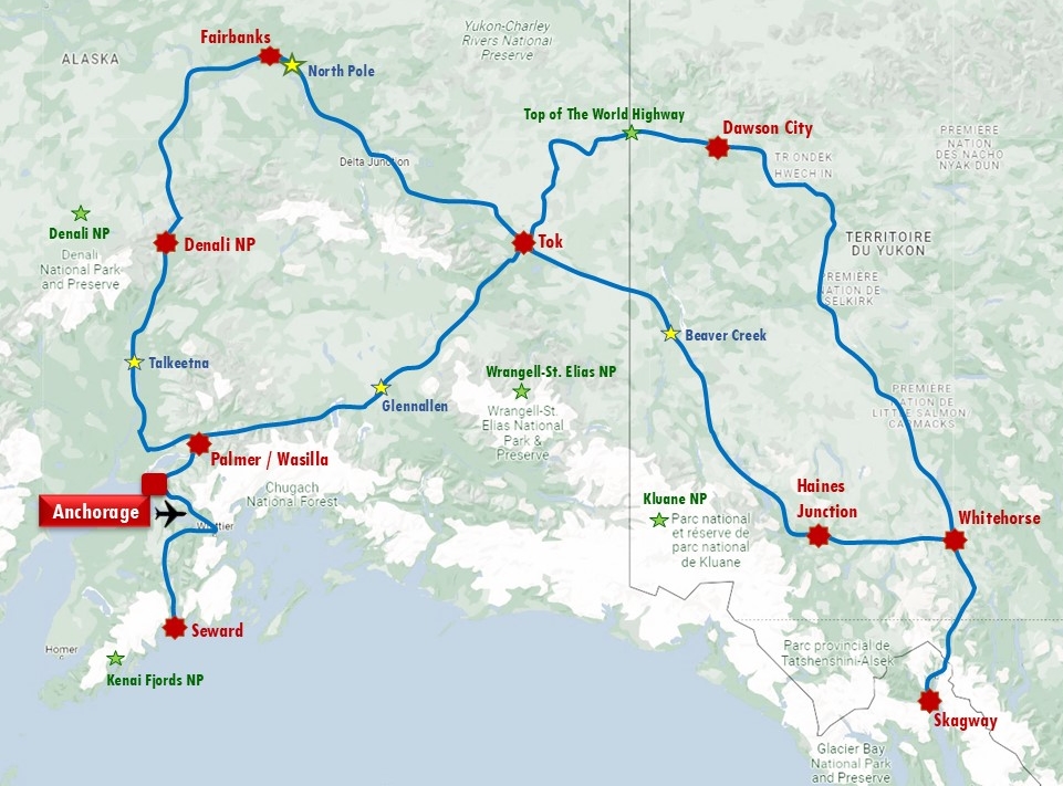Le Grand Nord, le Toit du Monde... L'Alaska, c'est la région des extrêmes, le pays des superlatifs! Partez sur les traces des grands explorateurs, des ours et des aurores boréales. Du Nord au Sud, de l'Alaska au Yukon voisin, en territoire canadien, vous avez rendez-vous en terre méconnue, aux limites de l'endurance humaine. Des paysages à couper le souffle, une faune sauvage unique, les traces de la ruée vers l'or, la culture amérindienne... En route pour le Grand Blanc. Départs d'Anchorage ou de Whitehorse.