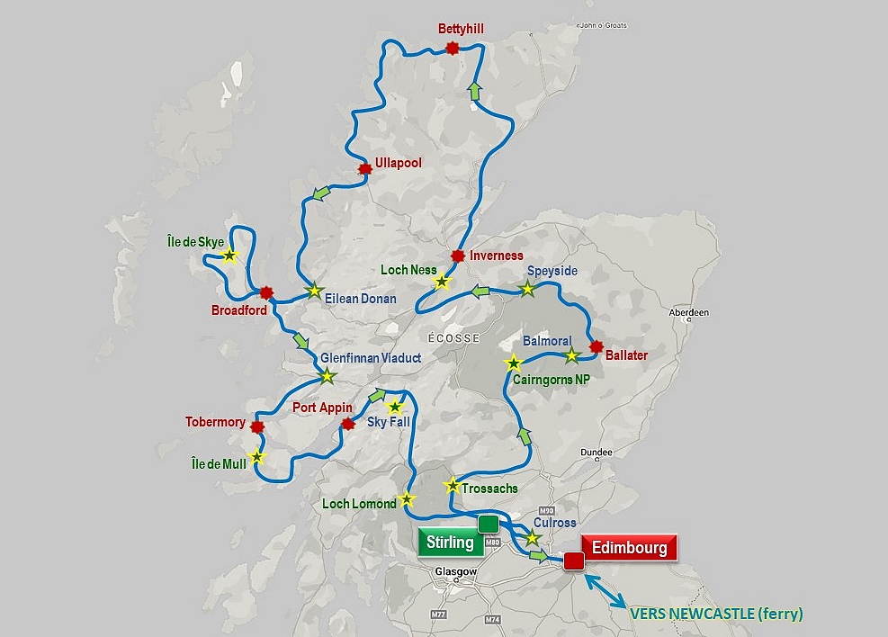 Cap sur l'Ecosse, pour un périple extraordinaire au pays des Lochs, des Clans, des châteaux hantés, de Harry Potter, et des purs malts ! Après une traversée en ferry de nuit entre Amsterdam et Newcastle (GB), cap sur Stirling, les Trossachs, le parc national de Cairngorns, le Speyside, puis Inverness et le Loch Ness. Direction les Highlands et la route North Coast 500, avant la magnifique île de Skye et sa voisine de Mull, dans les Hébrides Intérieures. Après la Sky Fall Rd, chère à James Bond, cap sur Edimbourg, avant le retour en ferry.
