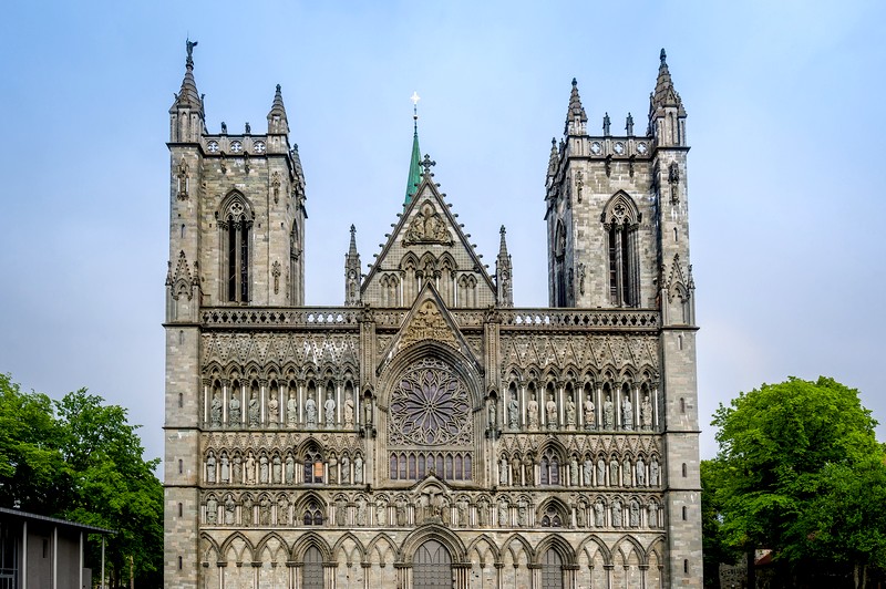 Blottie au creux de son fjord, à l’embouchure de la Nidelva, Trondheim s’est développée autour de la splendide Cathédrale de Nidaros, sur la rivière Nidelva. Son édification débuta vers la fin du 12ème siècle, dévoilant des parties de style roman.