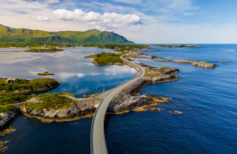 La plus belle portion de la Route de l'Atlantique relie Kårvåg à Vevang, sur 9 km. En tout, 8 ponts - dont un en forme d’ellipse, à l’inclinaison impressionnante (particulièrement à moto) - qui relient un chapelet d’îles et franchissent des bras de mer.