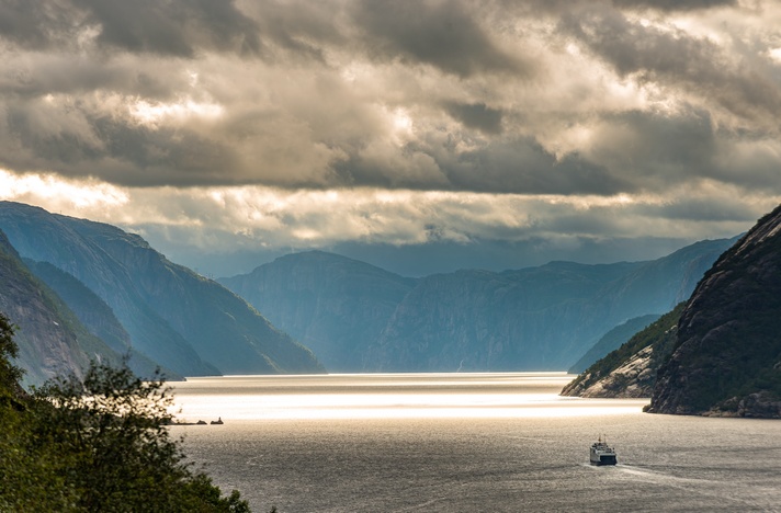 Vous débarquez au minuscule terminal de Songesand, avant de remonter côté nord du Lysefjord, par une belle route panoramique. Passé le lac Sandvatnet, l'itinéraire vous emmène (si vous le souhaitez) jusqu'au camp de base du légendaire Preikestolen. le site naturel le plus photographié et instagrammé de Norvège!